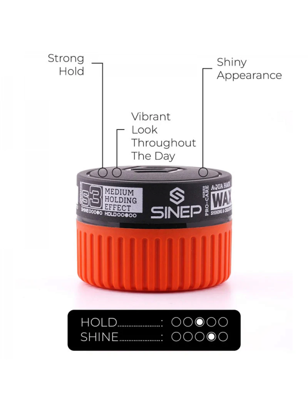 Sinep Acqua Hair Vax S3 Orange è la cera a base d’acqua per l’uomo che desidera un prodotti dalla tenuta medio-forte, un effetto lucido elegante e capelli sempre morbidi e idratati. La sua formula professionale garantisce controllo e definizione per tutto il giorno senza irrigidire, perfetta sia in salone che a casa